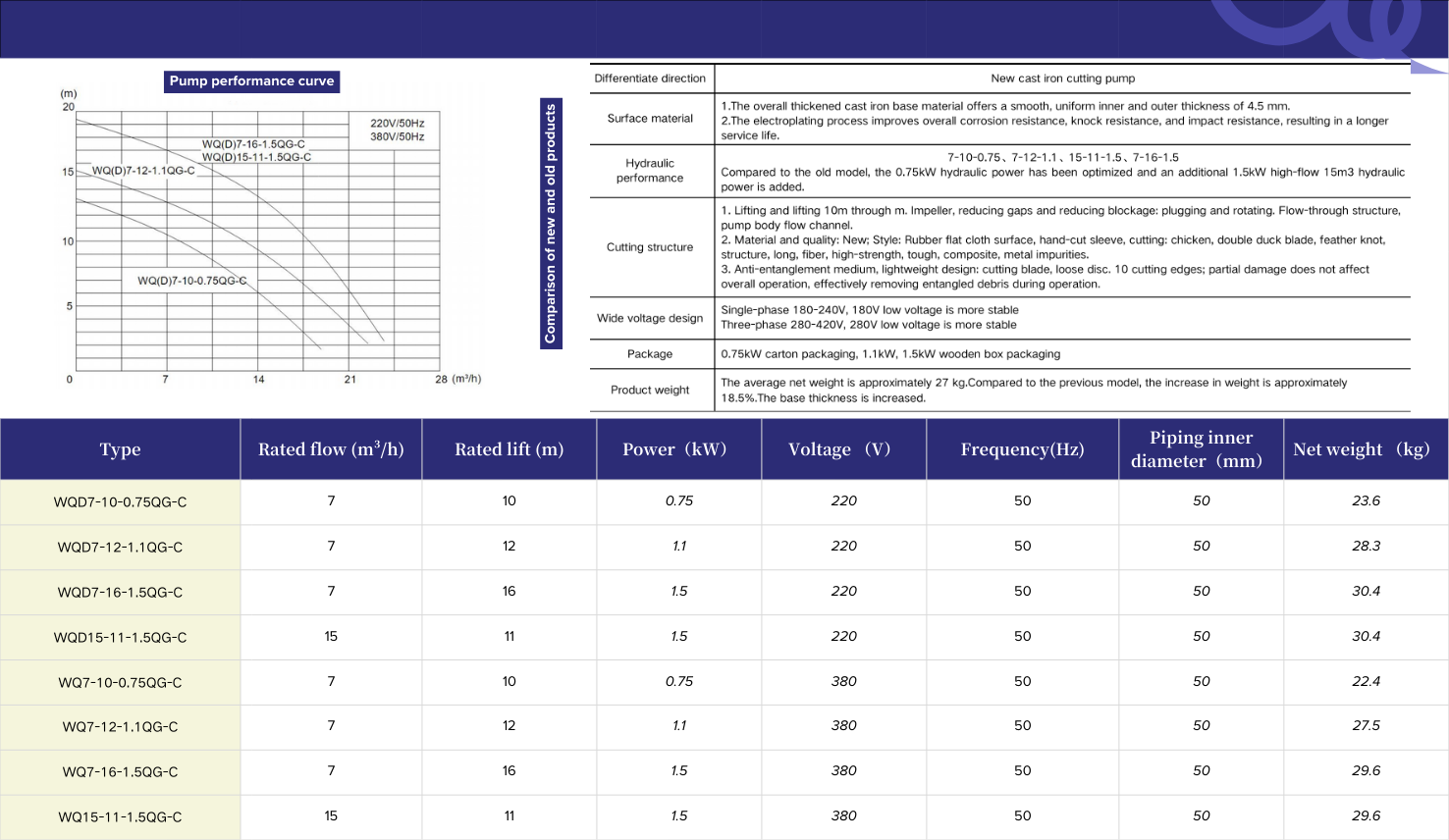 At the end of the day, the WQDX-A is about making sewage management easier and less stressful. It cuts through the tough stuff, resists wear and corrosion, and just keeps working. Whether it’s for home use, municipal systems, or industrial sites, it’s a pump that gives you one less thing to worry about.